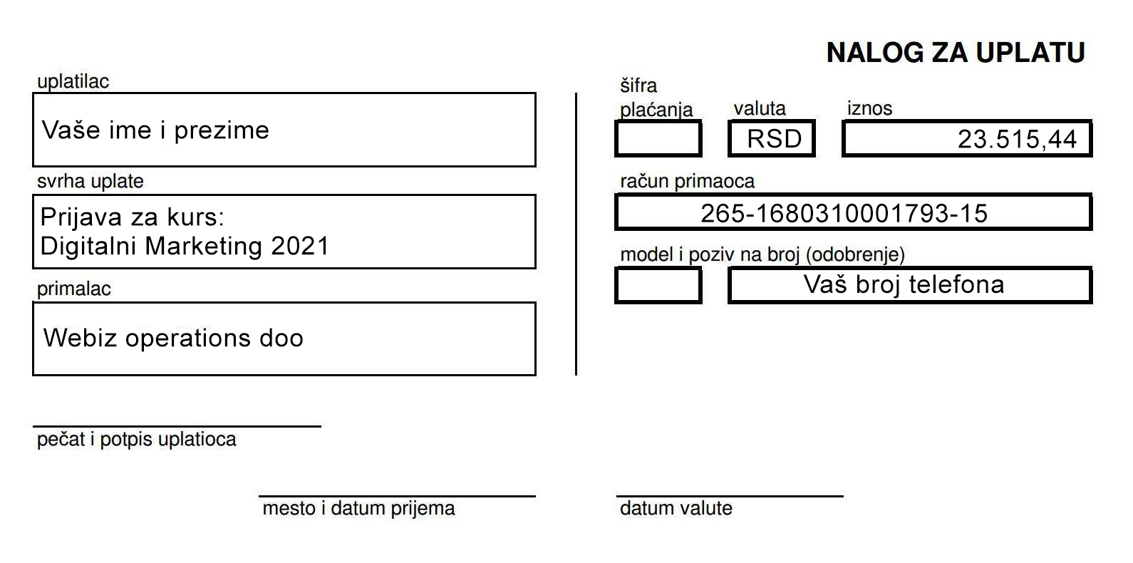 Plaćanje kursa u celosti
