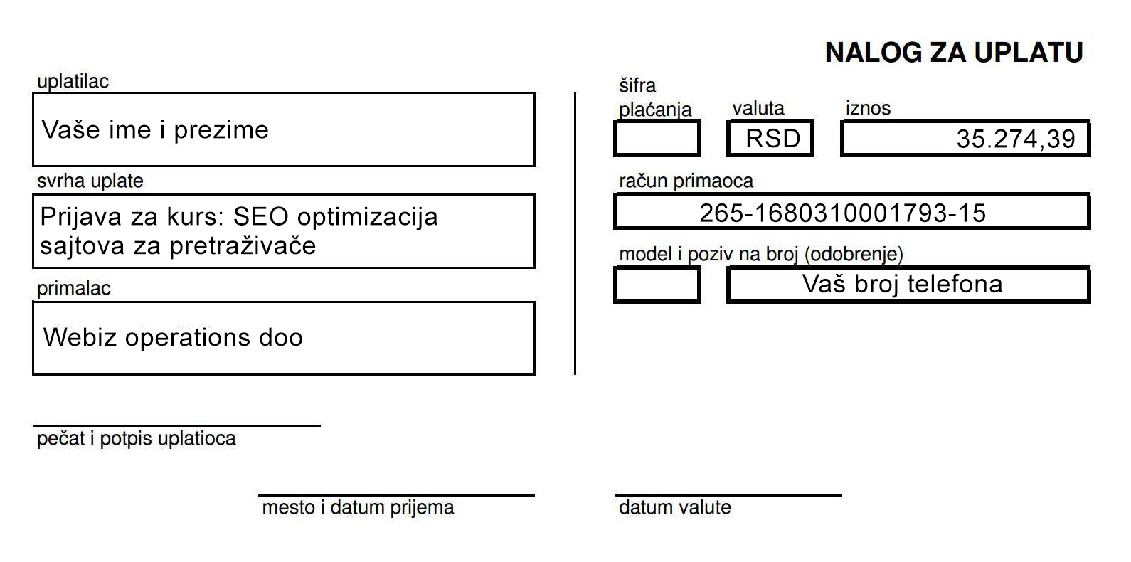 Plaćanje kursa u celosti